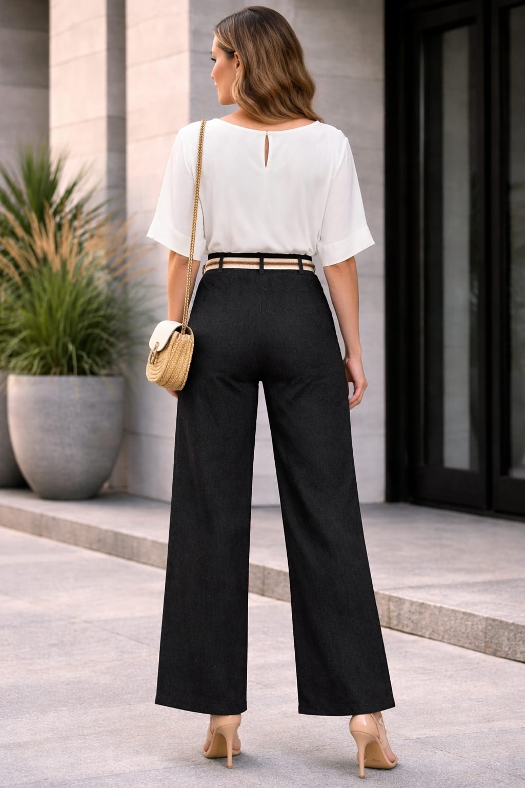Ravni kroj nogavica daje im elegantan i svestran izgled koji se lako kombinira – bilo uz ležerne majice ili elegantnije bluze. Mekan i prozračan materijal osigurava ugodan osjećaj na koži, dok dodatak elastina pruža potrebnu fleksibilnost i slobodu pokreta.