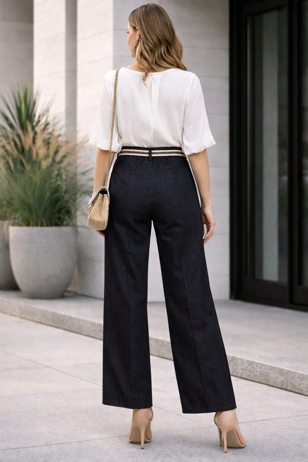 Ženske traper hlače – lagani ljetni model | Moderne ženske traper hlače izrađene su od laganog i elastičnog materijala, idealnog za toplije dane. Zahvaljujući udobnom elastičnom struku bez kopčanja, savršeno pristaju uz tijelo i omogućuju lako oblačenje te maksimalnu udobnost tijekom cijelog dana.